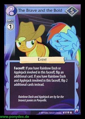 If you have Rainbow Dash or Applejack involved in this faceoff, flip an additional card. If you have Rainbow Dash and Applejack involved in this faceoff, flip 2 additional cards instead.